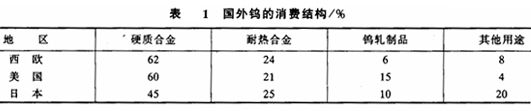中国钨的消费结构如下。
